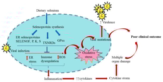 - Guillin, O.M.; Vindry, C.; Ohlmann, T.; Chavatte, L. Selenium, selenoproteins and viral infection. Nutrients 2019, 11, 2101. [Google Scholar] [CrossRef] [Green Version]