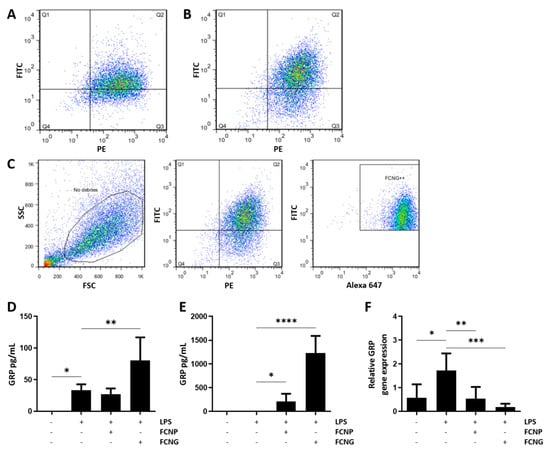 2.3. Anti-Inflammatory Effect of FCNG in THP-1 MoM Cells Is Mediated by Increased Intracellular and Extracellular GRP Levels and Downregulation of Pro-Inflammatory Mediators