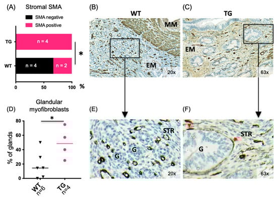 - Ibrahim, M.G.; Sillem, M.; Plendl, J.; Chiantera, V.; Sehouli, J.; Mechsner, S. Myofibroblasts Are Evidence of Chronic Tissue Microtrauma at the Endometrial-Myometrial Junctional Zone in Uteri with Adenomyosis. Reprod. Sci. 2017, 24, 1410–1418. [Google Scholar] [CrossRef] [PubMed]