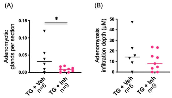 2.3. The Severity of the Adenomyosis Phenotype in the HSD17B1TG Is Advanced at Older Age