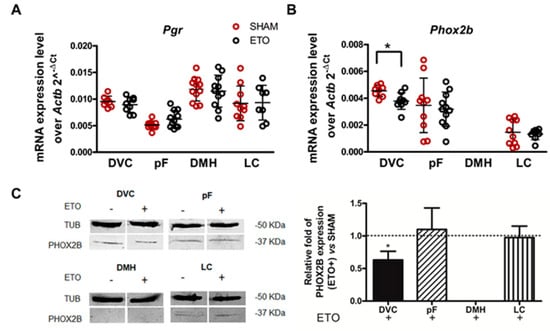2.2. Etonogestrel Treatment Down-Regulates Phox2b Gene and Protein Expression in the Dorsal Vagal Complex