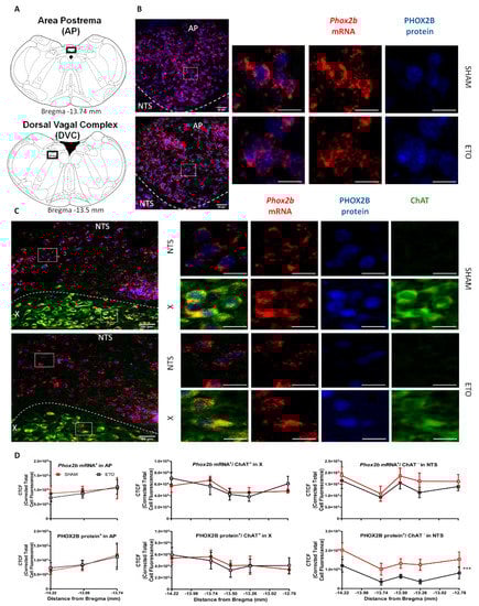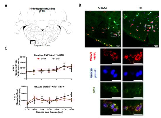 2.3. ETO Treatment Does Not Affect PHOX2B Expression in RTN CO2-Sensing Neurons