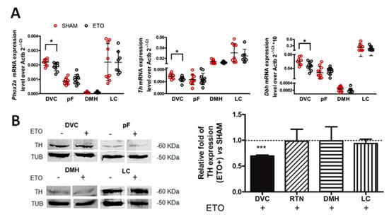 2.4. ETO-Mediated PHOX2B Down-Regulation in the NTS Results in Decreased Expression of PHOX2B Target Genes