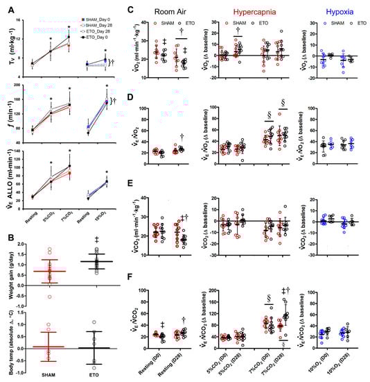2.5. ETO Treatment Does Not Alter Baseline Breathing or Respiratory Response to Chemoreflex Activation