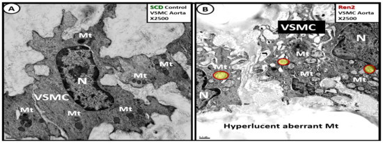 The vascular tunica media, which contains vascular smooth muscle cell(s) (VSMCs) depict aMt remodeling when there are cellular stressors such as hypertension, insulin resistance, and impaired glucose tolerance as occurs in the Ren2 descending aorta tunica media VSMCs (Figure 20) [66].