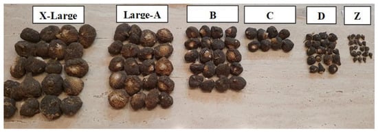 | 4 | BL_D-J | Dried black tubers size D (Smaller than C) | 23 | GR_Z-J | Dried grey tubers size E (very small–smaller than D) | ||||||