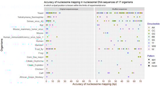3.2. Mapping Application in Nucleosome DNA Sequences of 17 Organisms