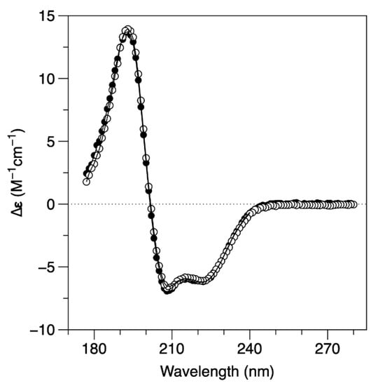 - Miles, A.J.; Ramalli, S.G.; Wallace, B.A. DichroWeb, a website for calculating protein secondary structure from circular dichroism spectroscopic data. Protein Sci. 2022, 31, 37–46. [Google Scholar] [CrossRef]