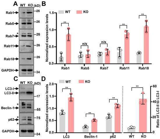 - Feldmann, A.; Bekbulat, F.; Huesmann, H.; Ulbrich, S.; Tatzelt, J.; Behl, C.; Kern, A. The RAB GTPase RAB18 modulates macroautophagy and proteostasis. Biochem. Biophys. Res. Commun. 2017, 486, 738–743. [Google Scholar] [CrossRef]