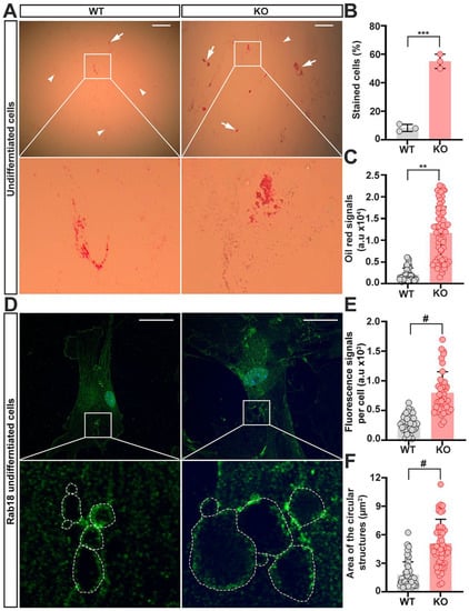 - Ozeki, S.; Cheng, J.; Tauchi-Sato, K.; Hatano, N.; Taniguchi, H.; Fujimoto, T. Rab18 localizes to lipid droplets and induces their close apposition to the endoplasmic reticulum-derived membrane. J. Cell Sci. 2005, 118 Pt 12, 2601–2611. [Google Scholar] [CrossRef] [Green Version]