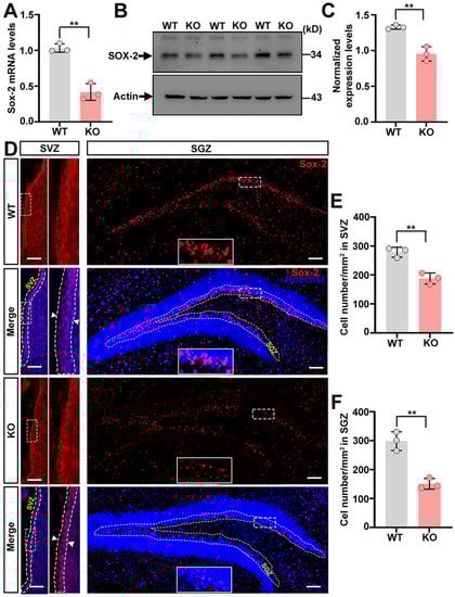 2.5. The Content of Neural Stem Cells Declines in the Brain of Trappc9-Null Mice