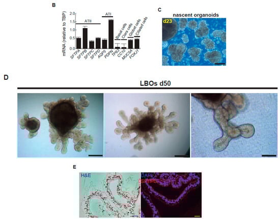 - Magro-Lopez, E.; Palmer, C.; Manso, J.; Liste, I.; Zambrano, A. Effects of lung and airway epithelial maturation cocktail on the structure of lung bud organoids. Stem Cell Res. Ther. 2018, 9, 186. [Google Scholar] [CrossRef] [Green Version]