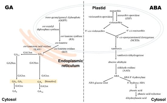 - Liu, X.; Hou, X. Antagonistic Regulation of ABA and GA in Metabolism and Signaling Pathways. Front. Plant Sci. 2018, 9, 251. [Google Scholar] [CrossRef] [PubMed] [Green Version]