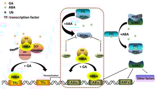 - Shu, K.; Zhou, W.; Chen, F.; Luo, X.; Yang, W. Abscisic Acid and Gibberellins Antagonistically Mediate Plant Development and Abiotic Stress Responses. Front. Plant Sci. 2018, 9, 416. [Google Scholar] [CrossRef] [Green Version]