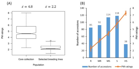 4.2. Phenotyping of Powdery Mildew Resistance and Statistical Analysis