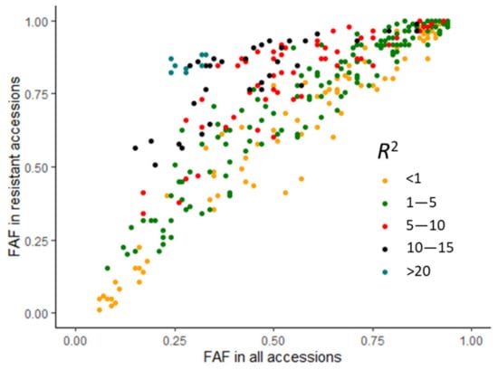 - Delourme, R.; Bousset, L.; Ermel, M.; Duffe, P.; Besnard, A.L.; Marquer, B.; Fudal, I.; Linglin, J.; Chadoeuf, J.; Brun, H. Quantitative resistance affects the speed of frequency increase but not the diversity of the virulence alleles overcoming a major resistance gene to Leptosphaeria maculans in oilseed rape. Infect. Genet. Evol. 2014, 27, 490–499. [Google Scholar] [CrossRef]