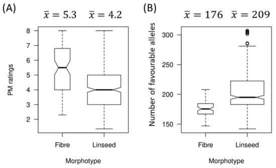 2.5. Relationship between PM Resistance and Flax Morphotypes