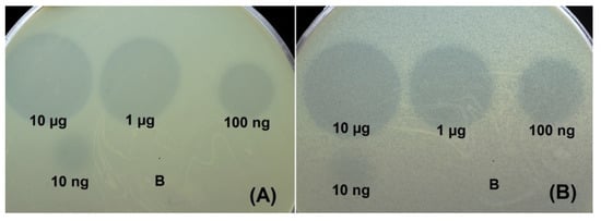 600 of 0.3 were mixed with 4 mL of soft agar (LB broth supplemented with 0.6% agarose). Mixture was plated onto nutrient agar. Then, 10 μL aliquots of solutions containing N-deletion mutants of depolymerases, and their tenfold dilutions were spotted on the soft agar lawns and incubated at 37 °C for 18–24 h.