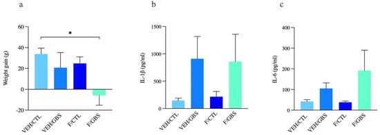 2.2. Mild GBS Infection of Dams Induced in Our Model Was Well Tolerated Based on the Monitoring of Maternal Weight and Pro-Inflammatory Response in the Blood Circulation