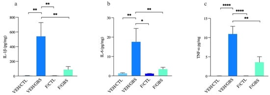 2.3. Flutamide Decreased the Levels of Placental Proinflammatory Cytokines IL-1β, IL-6 and TNF-α in GBS-Induced Chorioamnionitis