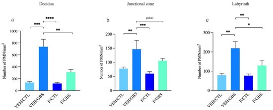2.4. Flutamide Reduced the Infiltration of PMN Cells in GBS-Infected Placentas