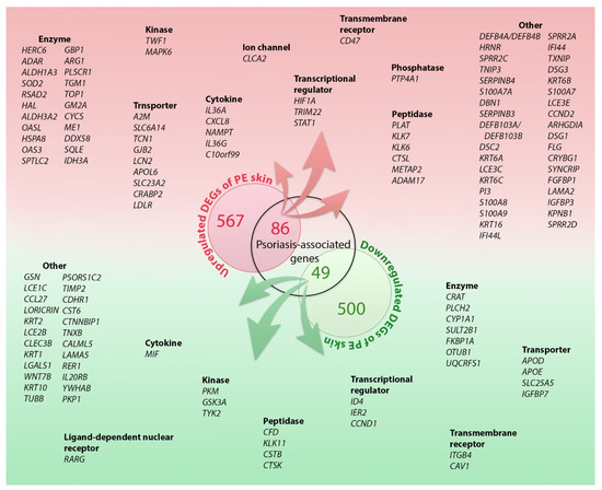 - Li, B.; Tsoi, L.C.; Swindell, W.R.; Gudjonsson, J.E.; Tejasvi, T.; Johnston, A.; Ding, J.; Stuart, P.E.; Xing, X.; Kochkodan, J.J.; et al. Transcriptome Analysis of Psoriasis in a Large Case–Control Sample: RNA-Seq Provides Insights into Disease Mechanisms. J. Investig. Dermatol. 2014, 134, 1828–1838. [Google Scholar] [CrossRef] [PubMed] [Green Version]
