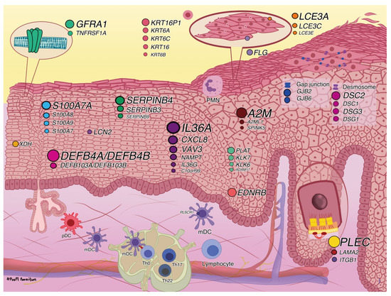 - Takahashi, T.; Yamasaki, K. Psoriasis and Antimicrobial Peptides. Int. J. Mol. Sci. 2020, 21, 6791. [Google Scholar] [CrossRef] [PubMed]