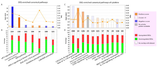 | IL36A | 14.572 | 1.340 × 10−4 | CXCL14 | −1.752 | 1.650 × 10−3 |