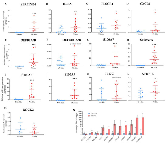 - de Jongh, G.J.; Zeeuwen, P.L.; Kucharekova, M.; Pfundt, R.; van der Valk, P.G.; Blokx, W.; Dogan, A.; Hiemstra, P.S.; van de Kerkhof, P.C.; Schalkwijk, J. High Expression Levels of Keratinocyte Antimicrobial Proteins in Psoriasis Compared with Atopic Dermatitis. J. Investig. Dermatol. 2005, 125, 1163–1173. [Google Scholar] [CrossRef]