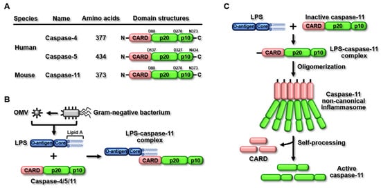- Agnew, A.; Nulty, C.; Creagh, E.M. Regulation, Activation and Function of Caspase-11 during Health and Disease. Int. J. Mol. Sci. 2021, 22, 1506. [Google Scholar] [CrossRef] [PubMed]