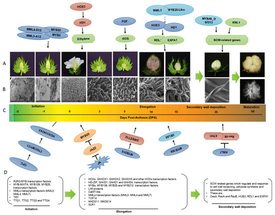 | MADS14 | MADS-box | Expressed during fiber elongation and negative role in elongation |