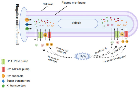- Zhang, D.; Zhang, T.; Guo, W. Effect of H2O2 on fiber initiation using fiber retardation initiation mutants in cotton (Gossypium hirsutum). J. Plant Physiol. 2010, 167, 393–399. [Google Scholar] [CrossRef]