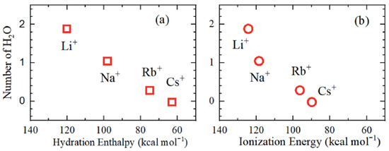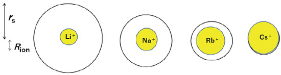 - Hayamizu, K.; Chiba, Y.; Haishic, T. Dynamic ionic radius of alkali metal ions in aqueous solution: A pulsed-field gradient NMR study. RSC Adv. 2021, 11, 20252–20257. [Google Scholar] [CrossRef]