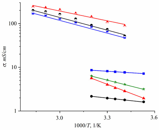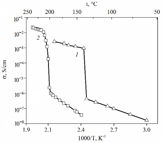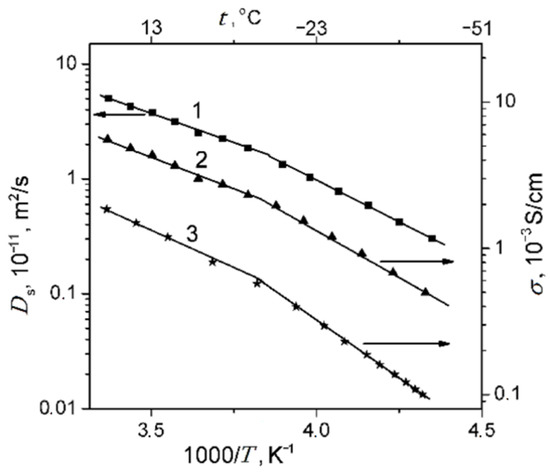 Ion exchangers, solid-state proton conductors, and polymer electrolytes for lithium batteries are very attractive in view of modern energy saving and development of environmentally friendly electrochemical technologies. Cation and anion polymeric ion-exchange membranes are widely applied in ion and liquid mixture separation (electrodialysis, brine electrolysis, extraction of rare metal ions from solutions, water–organic mixture separation, etc.) [1,2,3,4,5,6,7,8,9,10,11,12,13,14,15,16,17,18,19]. Since the beginning of the 21st century, interest in solid electrolytes has increased considerably due to the enhancement of fuel cells and high-power lithium batteries.
