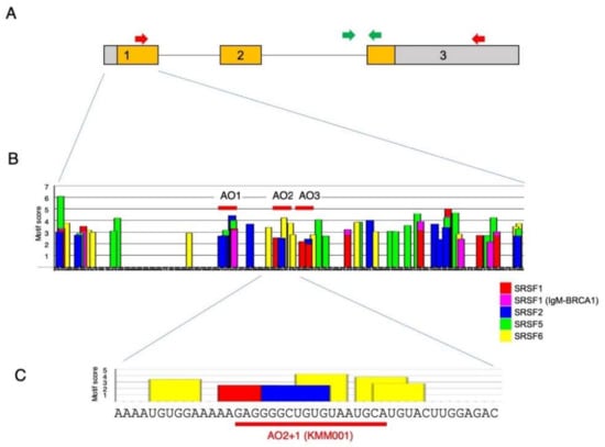 2.2. Amelioration of AO2+1-Induced Splicing Inhibition by SRSF5