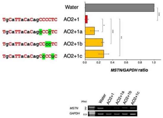 APA StyleMaeta, K., Farea, M., Nishio, H., & Matsuo, M. (2022). An Antisense Oligonucleotide against a Splicing Enhancer Sequence within Exon 1 of the MSTN Gene Inhibits Pre-mRNA Maturation to Act as a Novel Myostatin Inhibitor. International Journal of Molecular Sciences, 23(9), 5016. https://doi.org/10.3390/ijms23095016