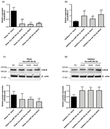 2.4. Modulation of miR-20a-5p Regulates LDLR Expression in HepG2 Cells