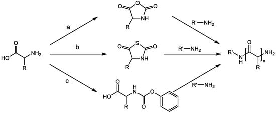 - Zheng, B.; Bai, T.; Tao, X.; Ling, J. An Inspection into Multifarious Ways to Synthesize Poly(Amino Acid)s. Macromol. Rapid Commun. 2021, 42, 2100453. [Google Scholar] [CrossRef] [PubMed]