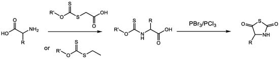 - Aubert, P.E.R.; Knott, E.B. Synthesis of thiazolid-2: 5-dione. Nature 1950, 166, 1039–1040. [Google Scholar] [CrossRef]