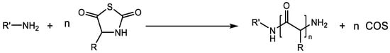 - Kricheldorf, H.R.; Sell, M.; Schwarz, G. Primary Amine-Initiated Polymerizations of α–Amino Acid N-Thiocarbonic Acid Anhydrosulfide. J. Macromol. Sci. Part A 2008, 45, 425–430. [Google Scholar] [CrossRef]