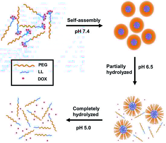 - Ma, B.X.; Zhuang, W.H.; Wang, Y.A.; Luo, R.F.; Wang, Y.B. pH-sensitive doxorubicin-conjugated prodrug micelles with charge-conversion for cancer therapy. Acta Biomater. 2018, 70, 186–196. [Google Scholar] [CrossRef] [PubMed]