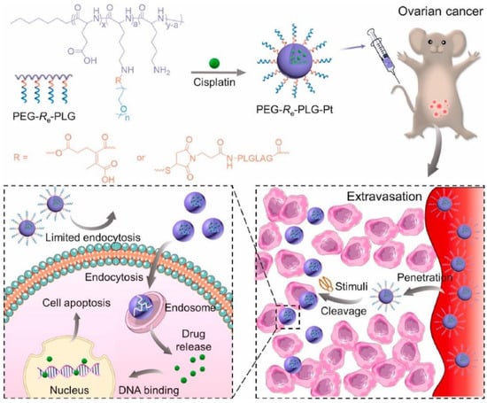 - Jiang, Z.; Feng, X.; Zou, H.; Xu, W.; Zhuang, X. Poly(l-glutamic acid)-cisplatin nanoformulations with detachable PEGylation for prolonged circulation half-life and enhanced cell internalization. Bioact. Mater. 2021, 6, 2688–2697. [Google Scholar] [CrossRef]