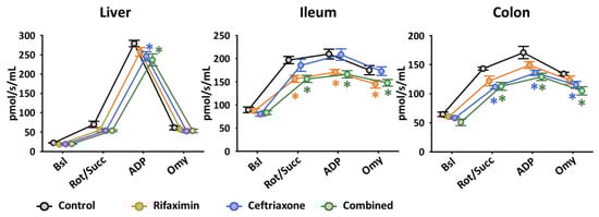 Chicago/Turabian StyleBaráth, Bálint, Dávid K. Jász, Tamara Horváth, Bence Baráth, Gergely Maróti, Gerda Strifler, Gabriella Varga, Lilla Sándor, Domonkos Perényi, Szabolcs Tallósy, and et al. 2022. "Mitochondrial Side Effects of Surgical Prophylactic Antibiotics Ceftriaxone and Rifaximin Lead to Bowel Mucosal Damage" International Journal of Molecular Sciences 23, no. 9: 5064. https://doi.org/10.3390/ijms23095064