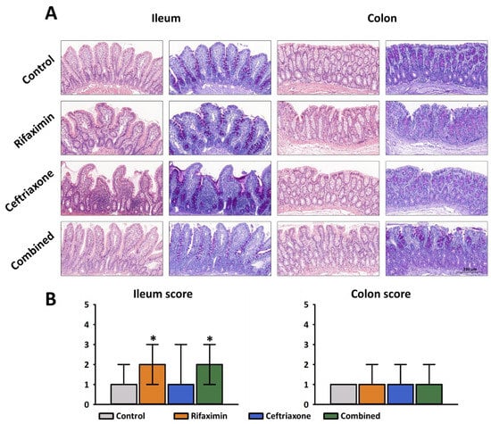 - Yang, L.; Liu, B.; Zheng, J.; Huang, J.; Zhao, Q.; Liu, J.; Su, Z.; Wang, M.; Cui, Z.; Wang, T.; et al. Rifaximin Alters Intestinal Microbiota and Prevents Progression of Ankylosing Spondylitis in Mice. Front. Cell. Infect. Microbiol. 2019, 9, 44. [Google Scholar] [CrossRef] [PubMed]