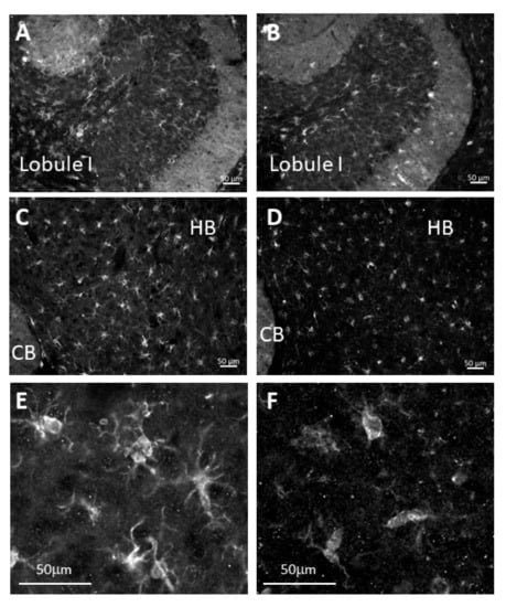 2.3. Immunohistochemical Analysis of the Cerebellum from 7-Week-Old Mice