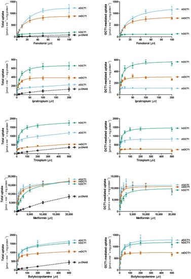 | Substrate | dOCT1 | hOCT1 | mOCT1 | dOCT1 | hOCT1 | mOCT1 | dOCT1 | hOCT1 | mOCT1 |