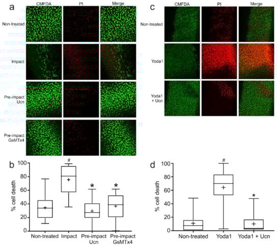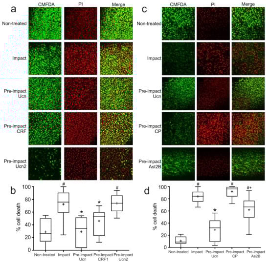 2.2. Pre-Impact Addition of Ucn Prevents Impact-Induced Cell Death