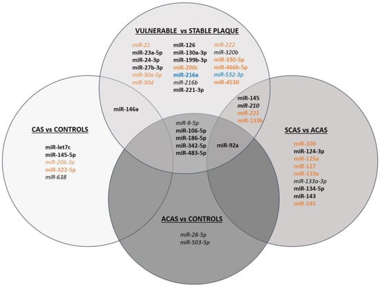 - Cipollone, F.; Felicioni, L.; Sarzani, R.; Ucchino, S.; Spigonardo, F.; Mandolini, C.; Malatesta, S.; Bucci, M.; Mammarella, C.; Santovito, D.; et al. A unique MicroRNA signature associated with plaque instability in humans. Stroke 2011, 42, 2556–2563. [Google Scholar] [CrossRef] [Green Version]