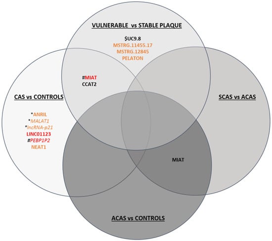 - Fasolo, F.; Jin, H.; Winski, G.; Chernogubova, E.; Pauli, J.; Winter, H.; Li, D.; Glukha, N.; Bauer, S.; Metschl, S.; et al. Long Noncoding RNA MIAT Controls Advanced Atherosclerotic Lesion Formation and Plaque Destabilization. Circulation 2021, 144, 1567–1583. [Google Scholar] [CrossRef] [PubMed]