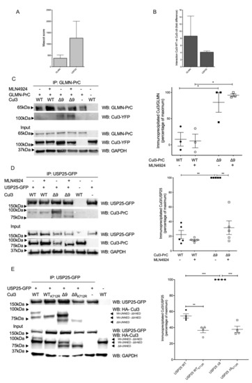 2.3. Among Several CRL3 Regulators, Glomulin, and USP25 Interact More with CUL3-∆9